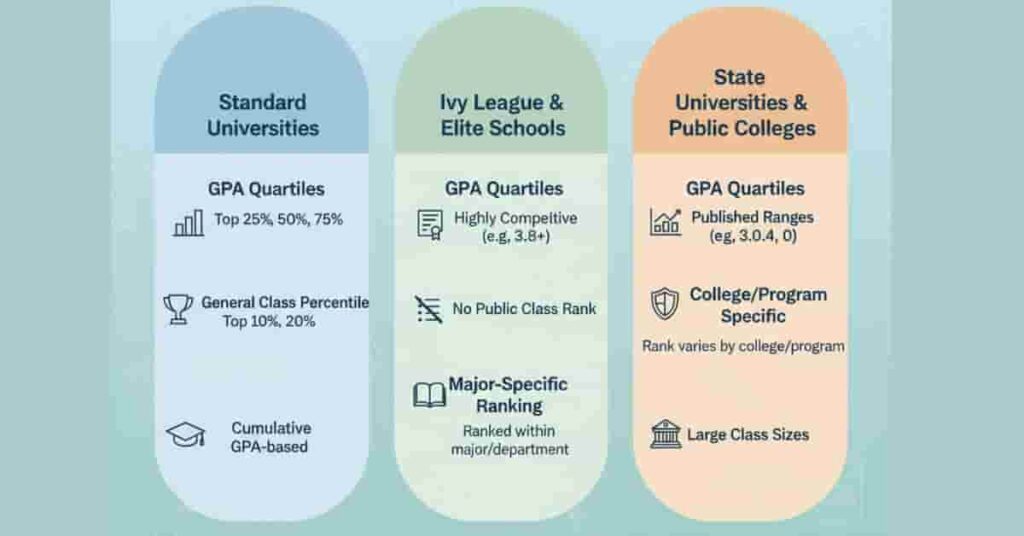 If your college doesn’t publish a rank, check whether it provides GPA quartiles or honors eligibility rules. Those numbers act as ranking signals.